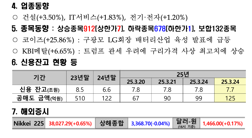 - KBI메탈 (+6.65%): 트럼프 관세 우려 속 구리 가격 상승에 따른 수혜