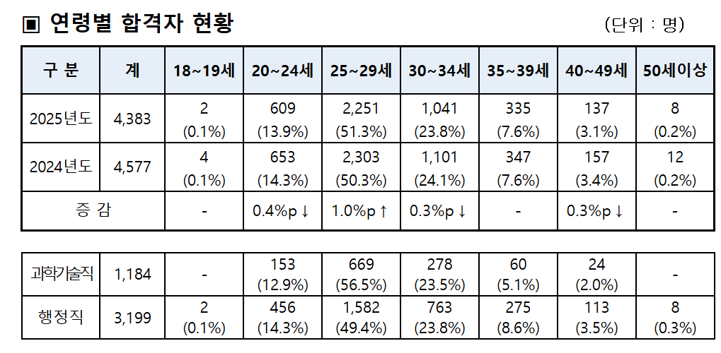 The gender ratio showed 59.8% male (2,623) and 40.2% female (1,760) among the successful candidates. The average age of all passers was 28.8 years, similar to last year’s 28.9.