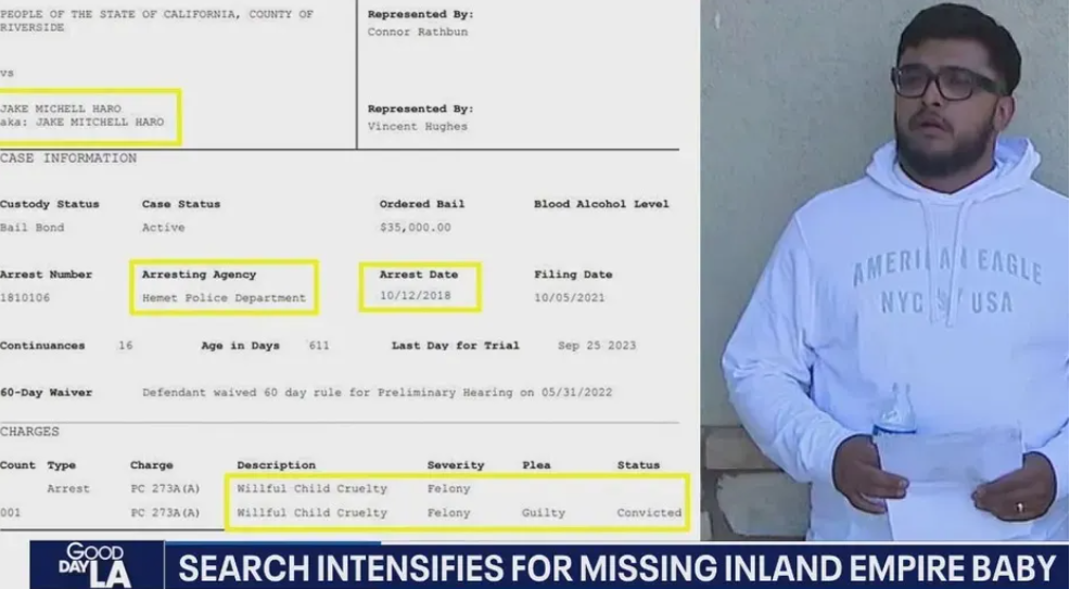 - History: Jake Haro previously convicted of child cruelty (2018), on probation