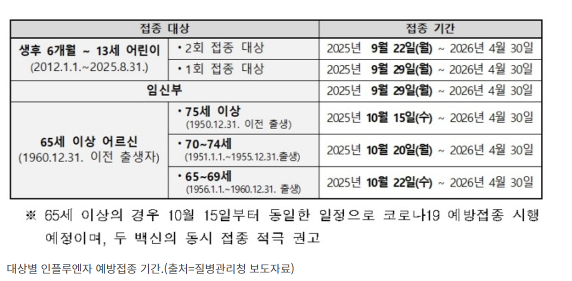 • The Influenza National Immunization Program runs Sep 22, 2025–Apr 30, 2026, free for children 6 months–13 years, pregnant people, and adults 65+.