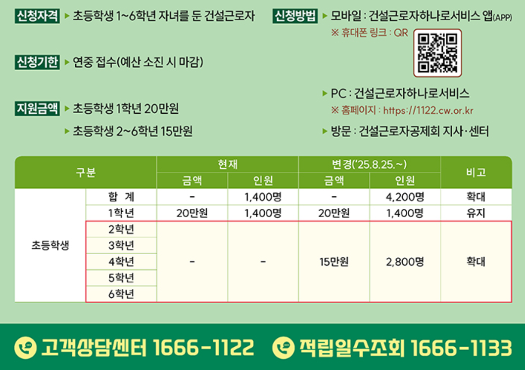 Korea’s Construction Workers Mutual Aid Association has rolled out an expanded construction worker education subsidy for the fall semester. Starting on the 25th, construction workers can apply on a first-come, first-served basis for cash support toward their children’s school needs. The headline change: elementary grades 2–6 now qualify—2,800 students will each receive KRW 150,000. The separate benefit for 1st graders—KRW 200,000 for 1,400 students—continues unchanged. Because the budget is finite (about KRW 4.2 billion in total), acting early is essential. This all-in guide explains who qualifies, how to apply via mobile/PC/branch, what documents to prepare, common pitfalls, and practical tips to stretch the construction worker education subsidy for maximum learning impact.